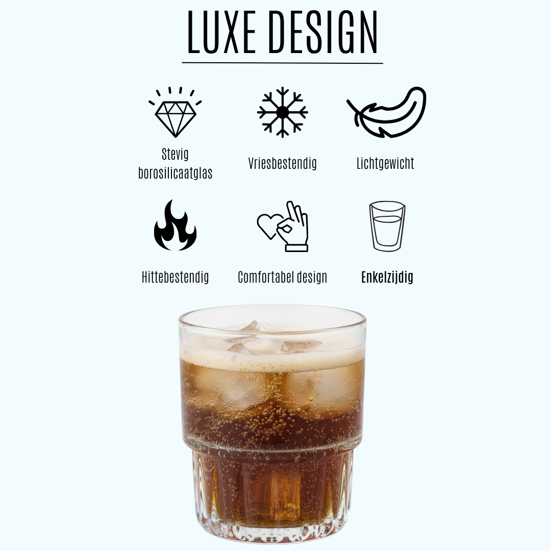 Heel tevreden over mijn bestelling! De drinkglazen zien er super stijlvol uit en voelen stevig aan. Levering was ook sneller dan verwacht. Zeker een aanrader.