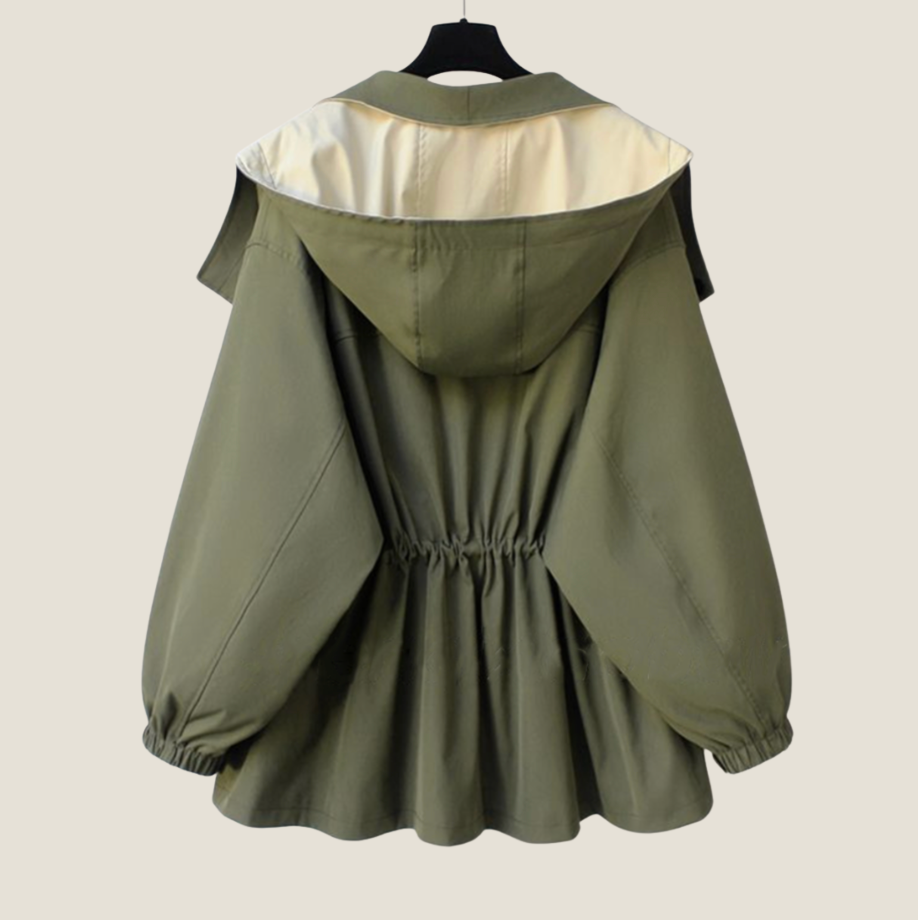 • Ochrona przed Deszczem: Tkanina wodoodporna i kaptur chronią cię przed deszczem, zachowując elegancki wygląd.