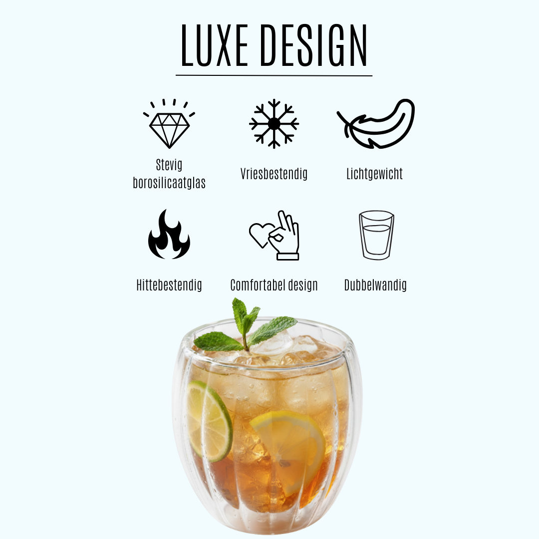 De dubbelwandige glazen zijn echt een gamechanger! Geen warme handen meer en mijn koffie blijft langer op temperatuur. Erg tevreden.