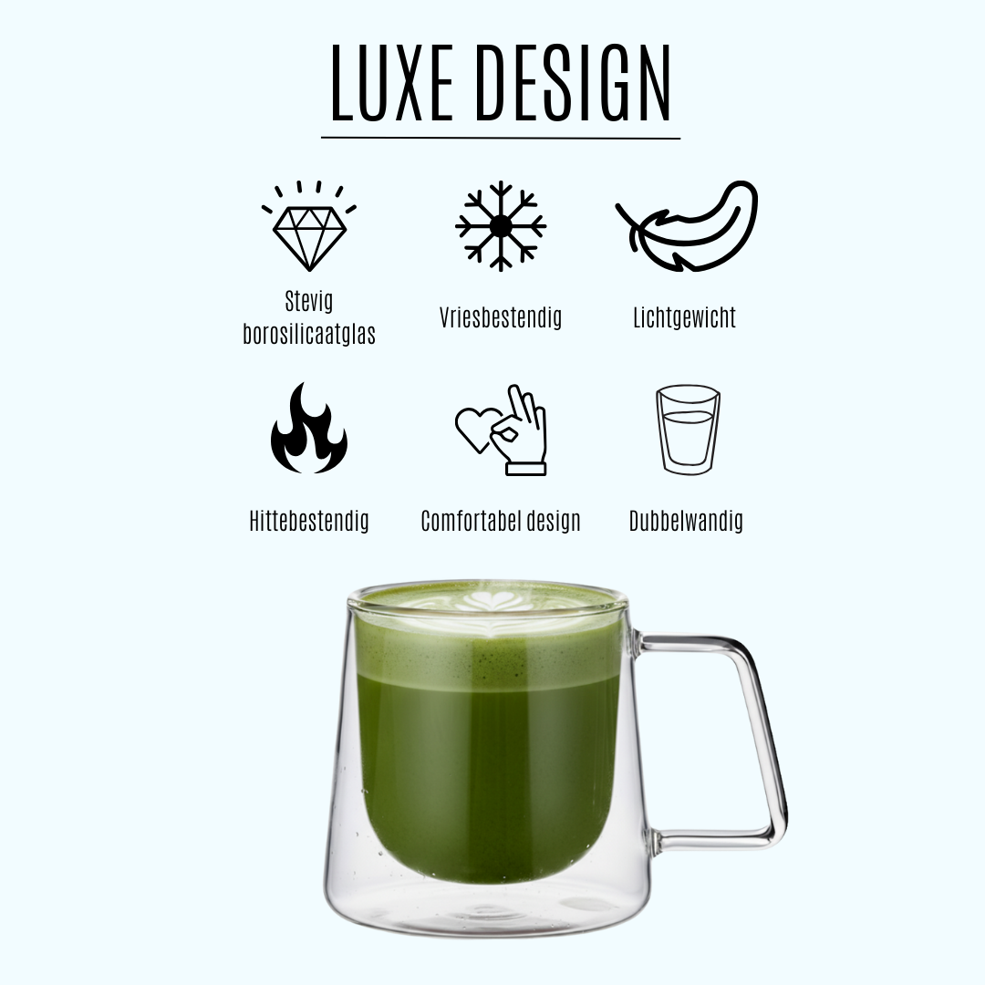 De dubbelwandige glazen zijn echt een gamechanger! Geen warme handen meer en mijn koffie blijft langer op temperatuur. Erg tevreden.
