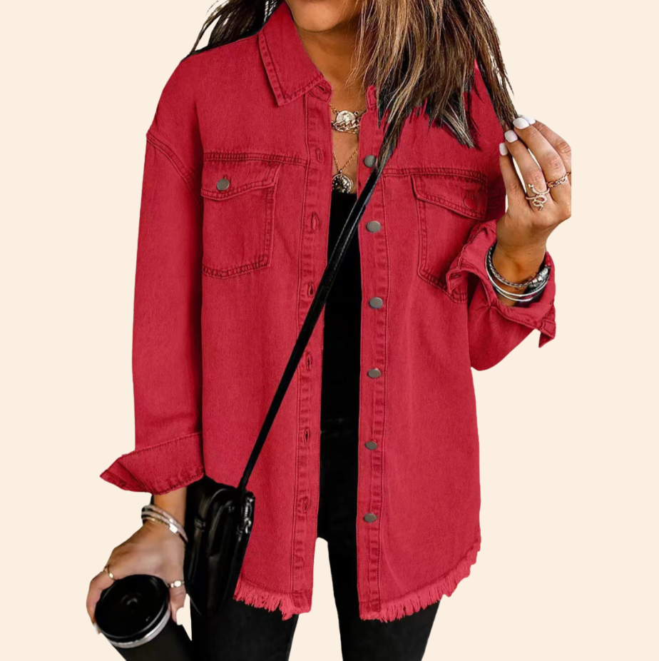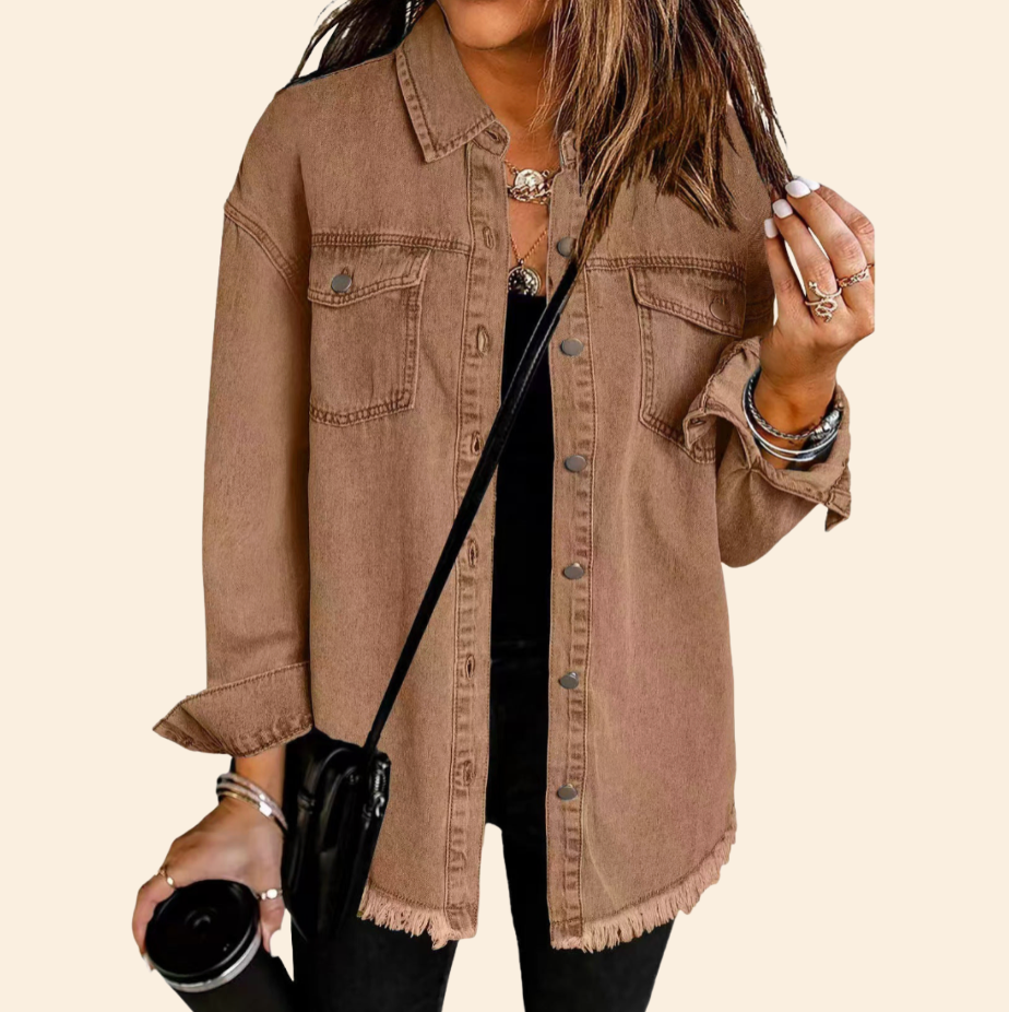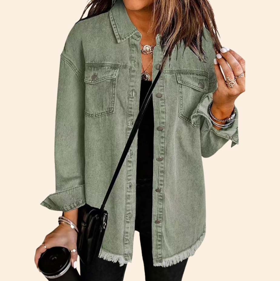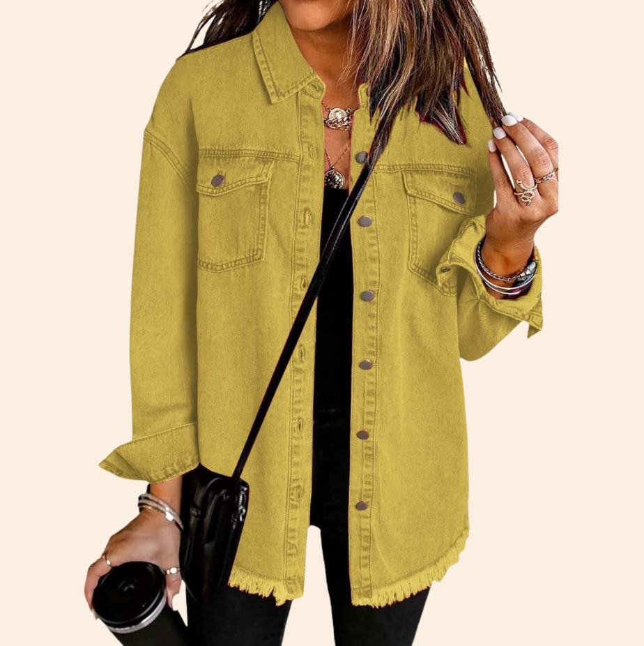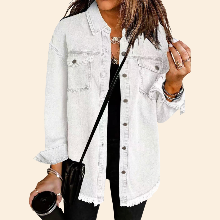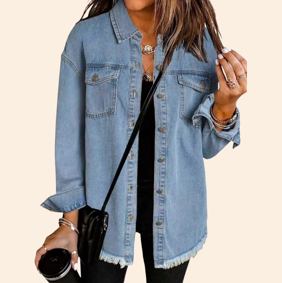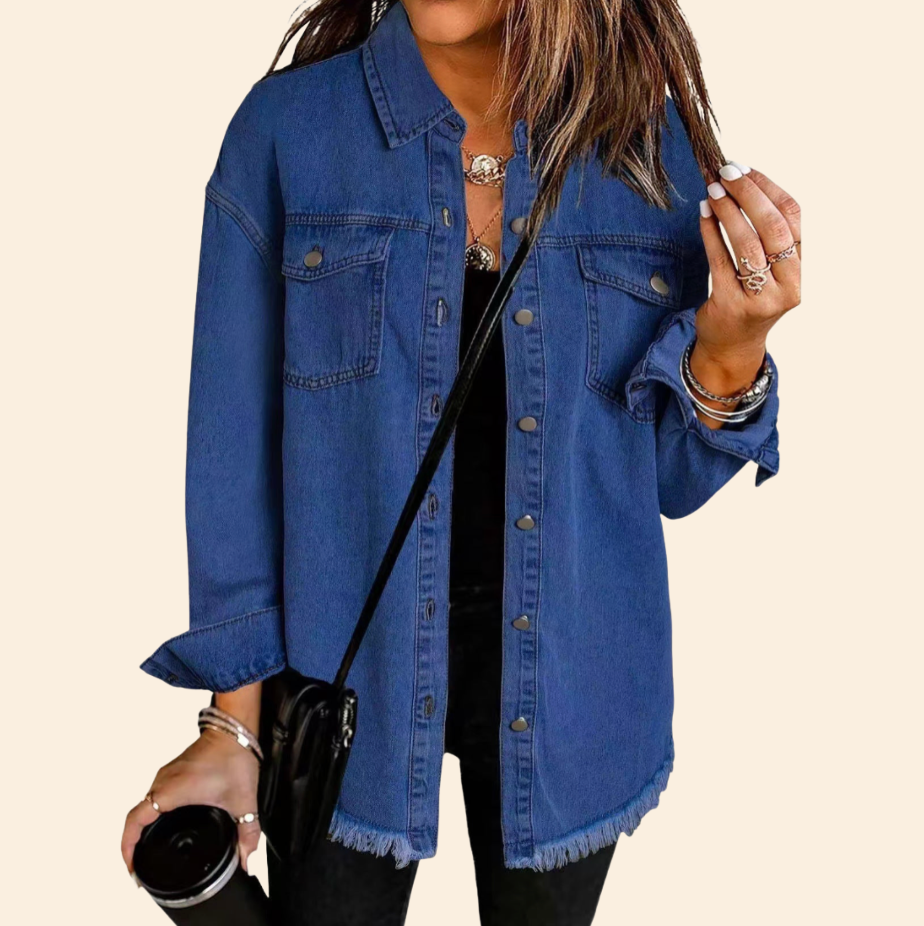 Zaktualizuj swoją garderobę o idealny element do warstwowego ubierania! Klasyczna codzienna kurtka dżinsowa Katja łączy ponadczasowy styl z luźnym krojem, co czyni ją niezbędnym elementem na każdą porę roku. Niezależnie od tego, czy ubierasz się elegancko, czy na luzie, ta kurtka jest Twoim wyborem na bezproblemową modę.