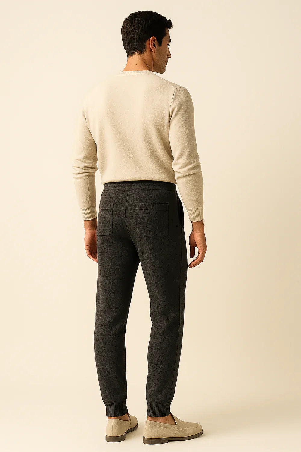 Confeccionados con pura cachemira, los Pantalones Belorin encarnan comodidad elevada y refinamiento moderno. La textura suave y finamente cepillada ofrece una sensación ligera y suave, mientras que las líneas delanteras prensadas y los puños acanalados crean una silueta limpia y estructurada. Una cintura con cordón refinada y bolsillos sutiles completan el diseño, fusionando facilidad y sofisticación en un equilibrio perfecto.